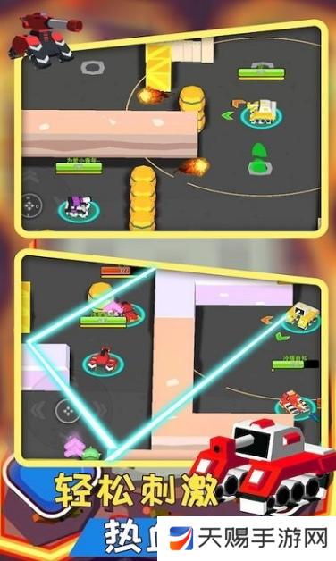 这款融合射击与策略元素的休闲手游,让玩家驾驶着迷你型号的小战车,通过战斗完成一个个关卡突破。游戏设计了像素画风的简洁图像,玩家可以体验到多种类型的坦克,按照不同的技能和战场定位进行组合,让策略更加多样化,每次过关都会有新型坦克逐步解锁。本游戏支持玩家们在线对战,也可以组队向敌人发起进攻,深度体验协作的默契感。